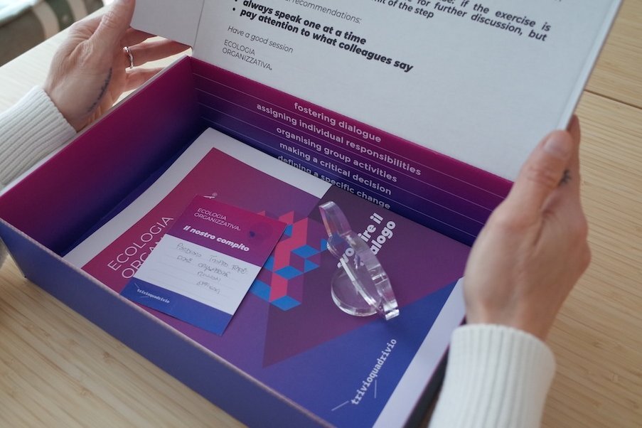 Il kit ECOLOGIA ORGANIZZATIVA contiene tutti i materiali che permettono a qualsiasi gruppo, in un'ora, di affrontare un compito preciso.